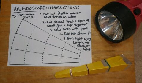 Investigate the amazing world of light by discovering polarization, infrared photography, converging and diverging lenses! You'll get to build an eye-balloon, laser microscope, and two different kids of telescopes in our classes this week. If you're making the Starburst Kaleidoscope, find adhesive mirror sheets here. This week covers Unit 9: Module 1.